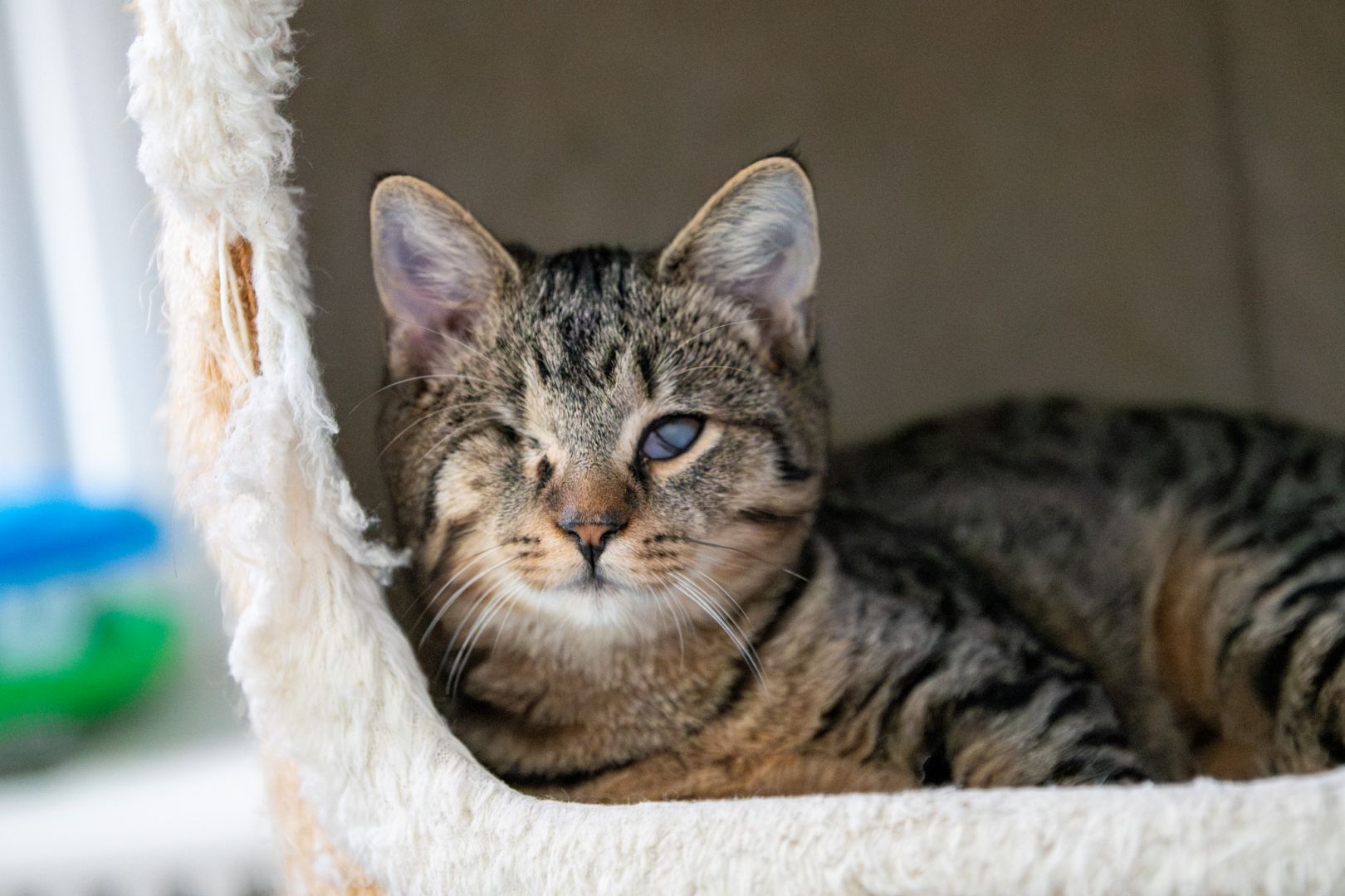 Kliper - uroczy, bury kocurek urodzony w maju 2025 roku.Los nie był dla niego łaskawy – przez ciężki koci katar stracił jedno oczko, a drugie jest w trakcie diagnozy. Ale wcale go to nie zatrzymuje!