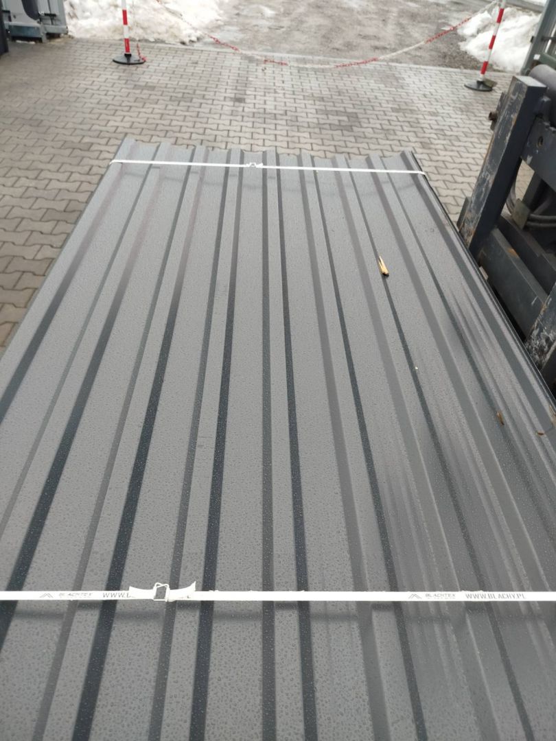Na sprzedaż blacha trapezowa II gatunku (towar z wadami powłoki) — paczki po ok. 50 arkuszy, łączna powierzchnia pakietu ok. 114 m². Profil TBD-18 o szer...