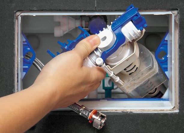 Serwis wc dolnopłuków podtynkowych na stelażu z ograniczonym dostępem do wnętrza.