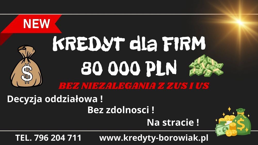 KREDYT DLA FIRM DO 80 000 PLN NA UPROSZCZONYCH ZASADACH! BEZ ZUS I US!