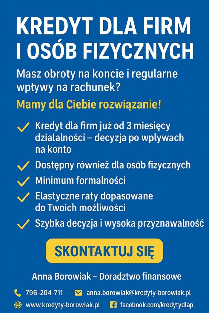 KREDYT DLA FIRM I OSÓB FIZYCZNYCH PO WPŁYWACH NA KONTO do 100 000 PLN