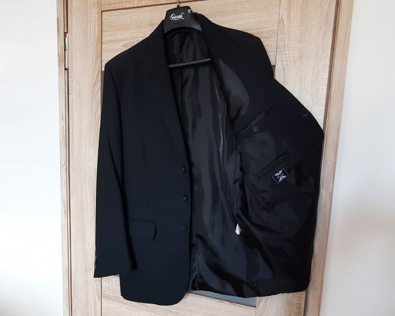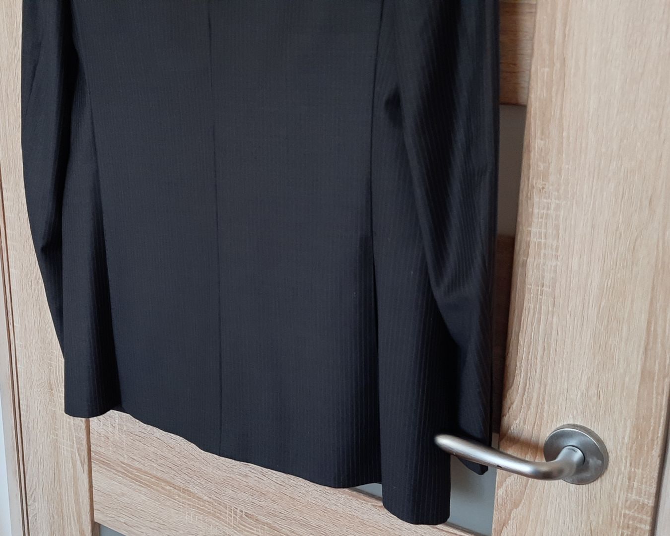 Cena 40 zł. Kolor granatowy wpadający w czarny, wełniana z 5% domieszką, na 182 cm wzrostu (182 / 96 / 82). Marynarka: długość rękawa ok. 69 cm, zapinana na 3 guziki, w klapie butonierka, kieszonka na poszetkę, dwie kieszenie zewnętrzne z patkami, wewnątrz 4 kieszenie. Całość na doskonałej jakości podszewce. Zakupiona w salonie, uszyta bardzo starannie w każdym szczególe. Bardzo wygodna, całoroczna, pasuje do różnych stylizacji, zawsze prezentuje się bardzo pięknie. Zapraszam, tel. 507-694-505.