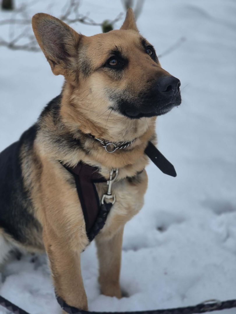 Jaka jest Mona? To młoda sunia, w typie owczarka, która ma w sobie mnóstwo pozytywnej energii i ciekawości świata.