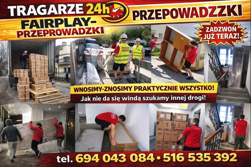 -POGOTOWIE TRAGARZE 24h. WNOSZENIE/ZNOSZENIE WSZYSTKIEGO od zakupów mebli,AGD,paczek,po pianina Pieców, Kotłów,XERO,gabarytów,urządzeń,maszyn, art.budowlanych,skrzyń, cena już od 130zł każdą usługę wyceniamy indywidualnie – cena dopasowana do zakresu prac, ilości rzeczy i lokalizacji.