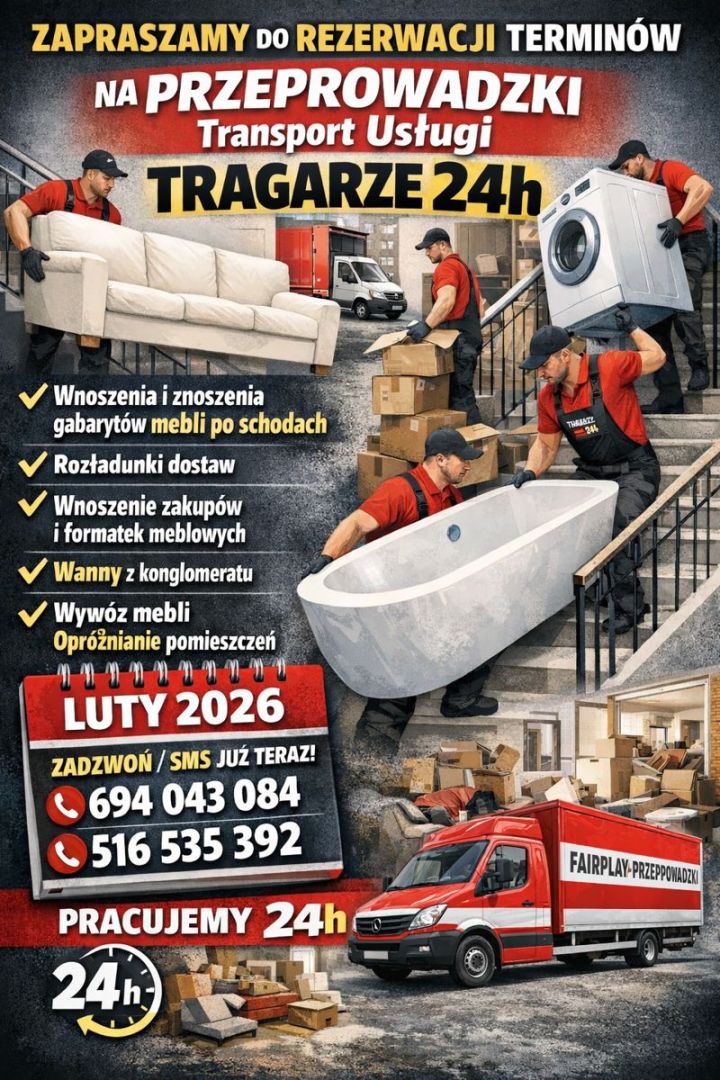 Przeprowadzki i transport tragarze Warszawa i okolice całodobowo.