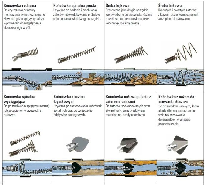 Profesjonalne przepychanie udrażnianie sprężyną mechaniczną z wymiennymi końcówkami