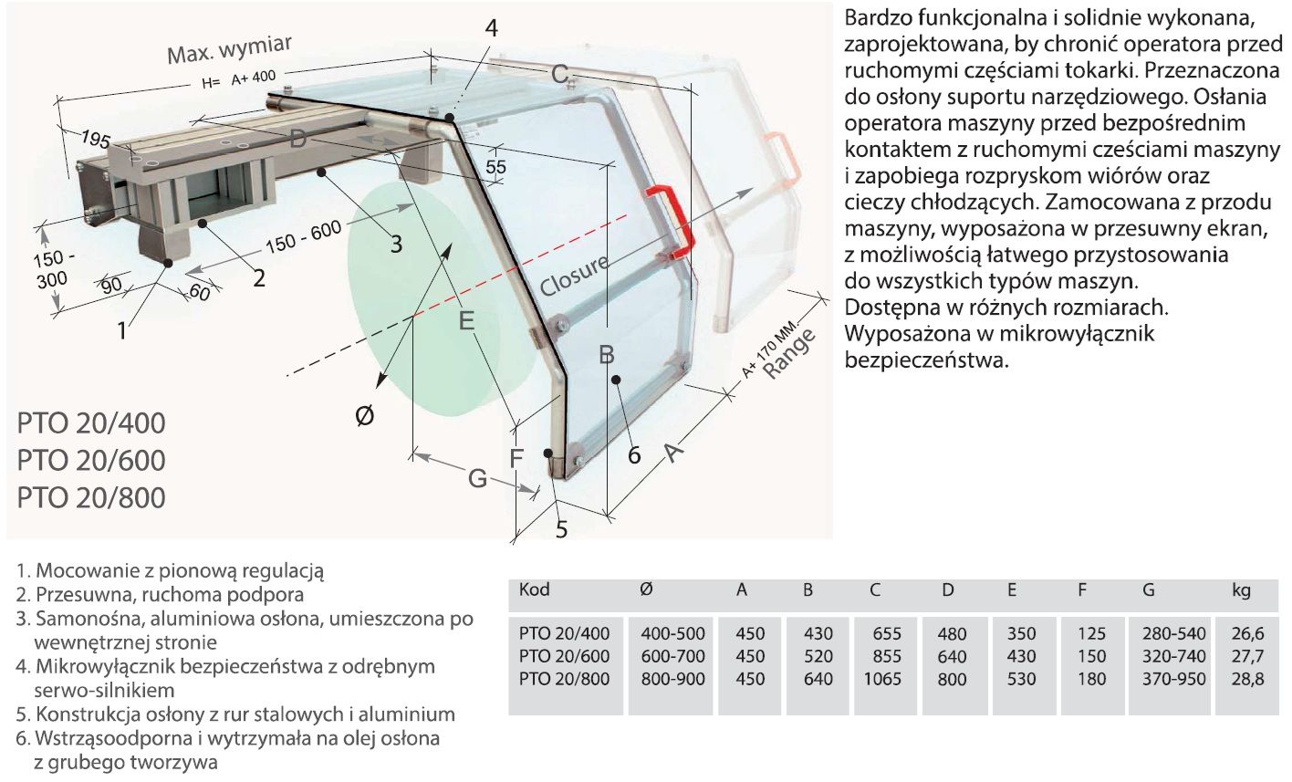 Przesuwna osłona do tokarek typ PTO 20/400  - Obraz nr 1