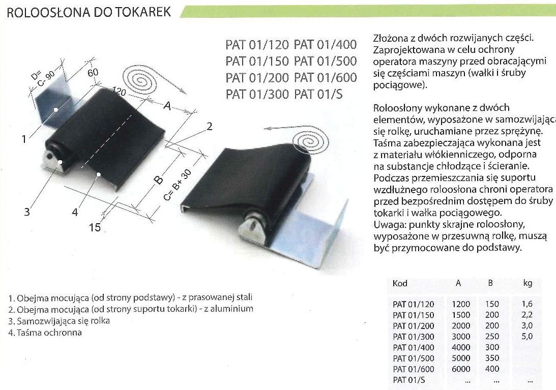 Roloosłona do tokarki TUR 630x4000, roloosłona PAT 01/400