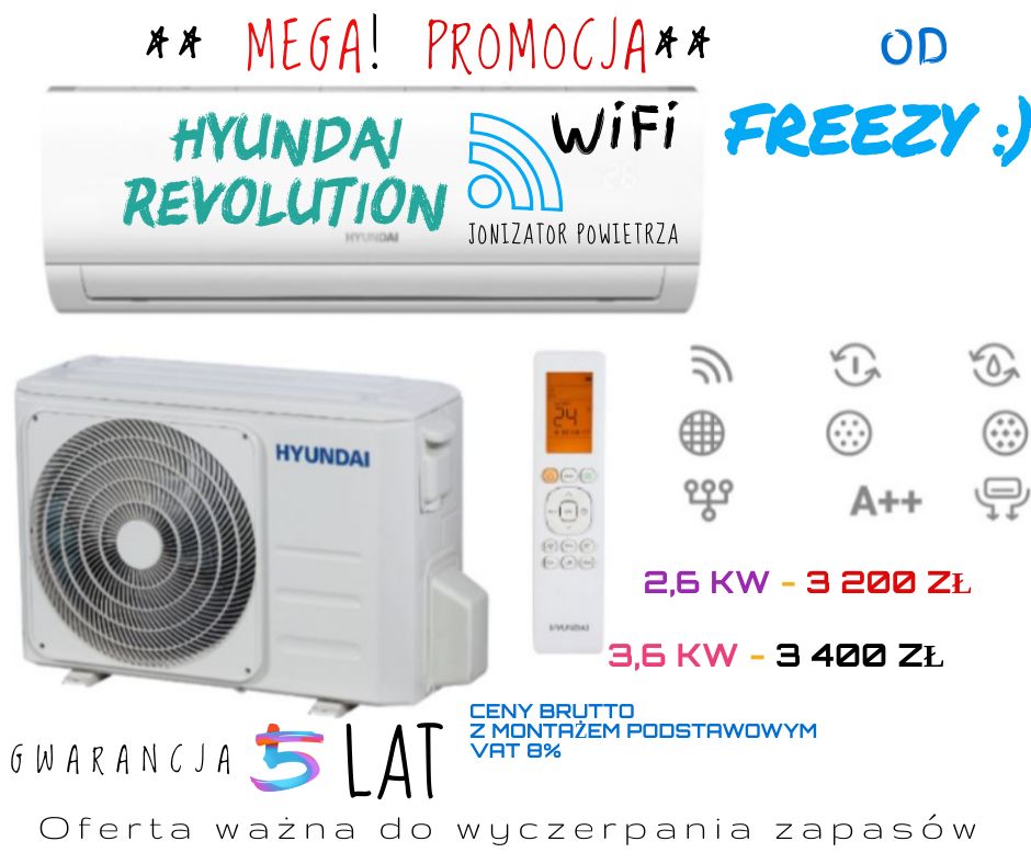 Dostępne urządzenia wszystkich mocy chłodzenia oraz firm : Gree, LG, Hyundai, Hisense , Mitsubishi Electric, Samsung, Cooper &Hunter, Panasonic, Kaisai ,Rotenso, AUX, MDV, TCL, Mistral, Skyworth itp.