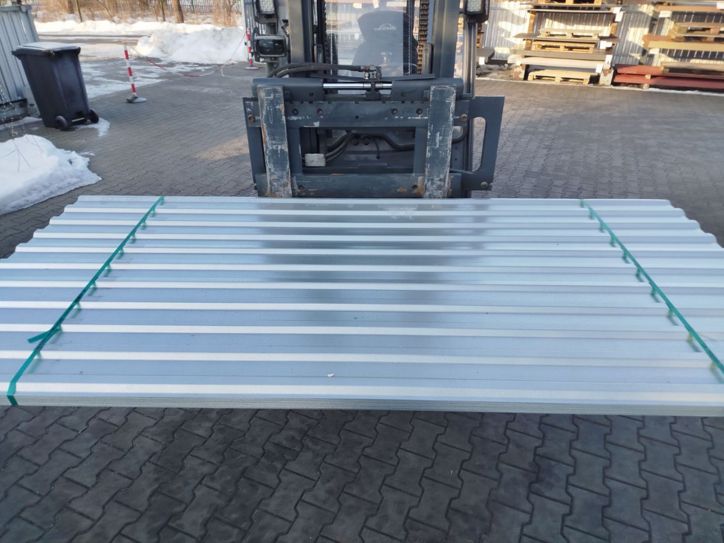 Na sprzedaż blacha trapezowa II gatunku (towar z wadami powłoki) — paczki po ok. 50 arkuszy, łączna powierzchnia pakietu ok. 114 m². Profil TBD-18 o szer...