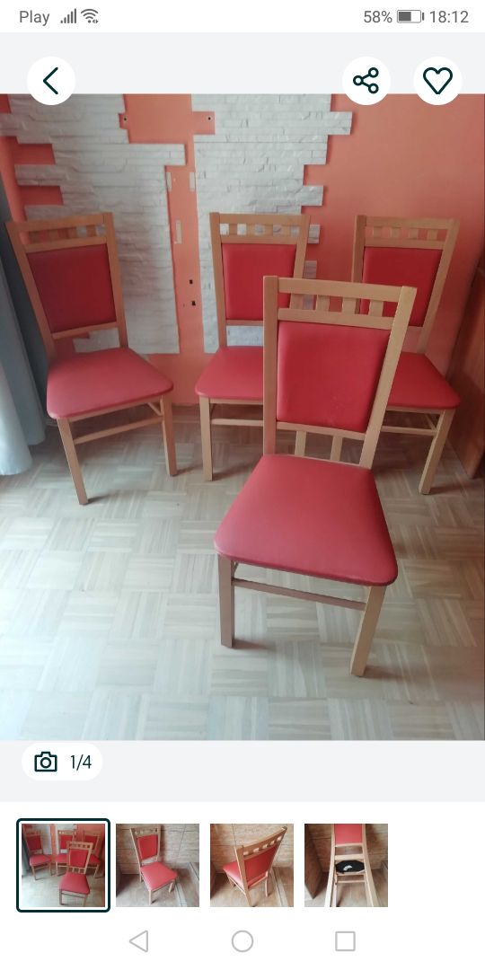 Sprzedam używany zestaw czterech Krzeseł z pełnego drewna DANIEL1 firmy Brzost